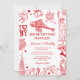 Add a unique twist to your wedding day with our quirky, hand-drawn New York themed wedding invitations! Each design is a piece of art, featuring fun red doodles including a cherub, disco ball, statue of liberty, brooklyn bridge and more. Easy to personalize with your event details, these destination invites are sure to delight your guests and set the mood for your special day.