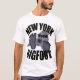 A grunge style New York map with Bigfoot footprints by artist/designer Charmaine Paulson on a American Apparel (any) t-shirt. The t-shirt has the text New York Home of Bigfoot. ©2012charmainepaulson