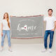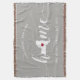 Show some home state pride with this cute rustic grey throw blanket featuring "home" in white calligraphy script lettering with a silhouette map of the state of New York standing in for the letter "O." A red heart illustration inside the state map completes the design; you can change the position of the heart to your home city by opening the design tool and dragging the heart shape to your favourite spot. Personalize with your home city, family name and year established to create a perfect and memorable housewarming gift or addition to your new home.