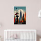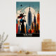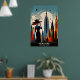 Experience the excitement of "New York: Land of Endless Possibilities" with this striking travel poster! This captivating travel poster showcases a silhouetted woman in a stylish hat, set against a retro-futuristic skyline filled with iconic skyscrapers. A large moon and celestial bodies add a cosmic flair, enhancing the scene's allure. With the tagline "New York: Land of Endless Possibilities," this artwork beautifully captures the essence of adventure and opportunity that defines the Empire State, inviting dreamers to explore its boundless horizons.