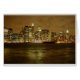 The New York City skyline lights up the clouds on a cloudy December night, reflecting in the swirling East River.