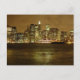 The New York City skyline lights up the clouds on a cloudy December night, reflecting in the swirling East River.