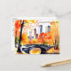 New York park fall watercolor well wishes thinking of you postcard. Watercolor New York central park with yellow foliage leaves bridge river