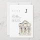 Chic wedding table number seating chart cards featuring a watercolor painting of the New York City Public Library. The pairing of the painterly watercolor and the chic typography makes for a beautifully fun combo.