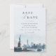 Celebrate your love against the iconic backdrop of New York City. This elegant save the date features a stunning watercolor illustration of Lady Liberty and the New York City skyline. The beautiful typography and minimalist design create a sophisticated and timeless look. Perfect for a destination wedding or a NYC-inspired celebration. Customize the save the date with your wedding date, names, and a personalized message.