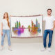 New York Skyline Rainbow Bright by Fab Funky. Features famous landmarks of New York City in a watercolor style using a rainbow of colours.