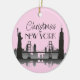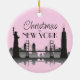 NEW YORK Skyline Silhouette Modern Pink Ceramic Ornament
