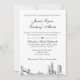 This elegant wedding invitation features a hand drawn sketch of the Manhattan skyline in New York City. All wording can be edited and re-arranged.