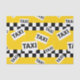 New York taxi cab driver yellow, black and white tissue paper. Ideal for taxi drivers, New Yorkers, and travellers. Taxi signs and black and white chequerboard pattern.