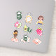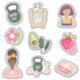 Chic, and girly new year new you resolution stickers. Our cute and girly sticker set features our own hand-drawn illustrations depicting different resolutions you want to achieve for the new year!. We've illustrated pink dumbells and a green kettlebell to represent getting fit and healthy. For eating more fruits and vegetables we've represent that resolution with avocado, kale, and a strawberry. The alarm clock represents getting more sleep. Cute pink planner book to illustrate getting organized. We've also incorporated a sweet caucasian girl wearing a yellow polka dot top and suspenders. Also incorporated into the pattern is a beautiful and sassy African American girl wearing a pink heart sweater, and a yellow bow in her hair. These adorable new year resolution stickers are perfect to start your new year and new you in style and help to motivate and achieve your new year resolutions and get organized. stick them on your planners, notebooks, calendars, etc. All illustrations are hand-drawn original artwork by Moodthology papery.