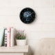The size of the clock is dramatic and the abstract alcohol ink design is soothing and intricate at the same time. I chose the black frame that adds pop to the blue and gold design. The gold printing would be better in a slightly darker or larger font. I love it and I’m looking for just the right place in ny new apartment. I would recommend this clock for a personal gift or a present. I feel that the quality is excellent for the money! I’m a bit of a clock nut so I’m pretty particular about my purchases. The clock is larger in diameter than many if the clocks I have, so it stands out very well. I think a slightly darker printing color and a moderately larger size would best suit a professional decor or add more impact in a work place item.