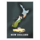 New Zealand holiday travel poster in a vintage or cartoon style.