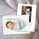 A simple birth announcement featuring your newborn's photo with an overlay of "introducing" in a stylish white script. Add your baby's name and, birth date. On the back, add an additional picture, birth stats, and a personalized message. Just click the edit/personalize button to customize this design.