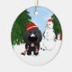 Unique Newfoundland Christmas design. Newfie with a bit of snow on his nose and a pool of drool at his paws. Irritated snowman looks on. To ward off the cold the Newfoundland has on a scarf and hat that are the colours of his country.