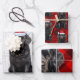 An adorable Newfoundland dog is ready for the holiday season with his Santa hat. This cute Christmas dog is paired with a red buffalo holiday plaid on this set of gift wrap for the dog lover.