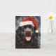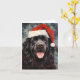 Colourful and joyful Christmas design with a Newfoundland dog wearing a Santa hat.