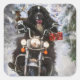 Newfoundland Dog Riding Motorcycle Christmas Square Sticker
