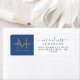 Chic, modern and simple return address label for the newlywed couple features the text Mr and Mrs in elegant script calligraphy, with a gold monogram on a classic blue background. Simply add your names, monogram and address. Exclusively designed for you by Happy Dolphin Studio!