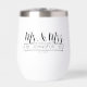 Especially for newlyweds this thermal wine tumbler design features beautiful script text of 'Mr & Mrs'. A banner decorated with hearts holds your last name while wedding date can be added beneath. Custom glasses make a great wedding, bridal shower, moving, or hostess gift. Search ID668 to see other products with this design.