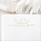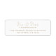 Newlyweds Script Mr Mme Gold Nom de retour Adresse. M. et Mme sont dans un script de style d'écriture manuscrite informel et votre nom et votre adresse sont en dessous duquel vous pouvez facilement personnaliser. Montré en or sur blanc, vous pouvez cependant changer à n'importe quelle couleur de votre choix via l'option personnaliser plus.