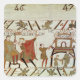 French School's News concerning Harold (c.1020-66) being brought to William (1018-87) and a house being burnt, detail from the Bayeux Tapestry, before 1082 (wool embroidery on linen) located at the Musee de la Tapisserie, Bayeux, France. The News concerning Harold (c.1020-66) being brought to William (1018-87) and a house being burnt, detail from the Bayeux Tapestry, before 1082 (wool embroidery on linen) was created around the 11th century.