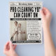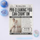 Clean up your marketing with this vintage newspaper-style flyer designed for home cleaning services. Featuring a classic, retro layout with bold headlines and easy-to-read text, this customizable flyer is perfect for promoting residential cleaning, maid services, and housekeeping specials. Stand out in your neighbourhood with timeless style and professional appeal.