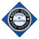 Give a big shout out at your graduation ceremony with this funny graduation cap topper. Shout out text reads: Next Stop...Grad School. Graphic art features two white stars to show how stellar you are! Circle graphic features a dot pattern border. Add you name or other message. Graduation cap topper will help your family and friends find you in the crowd. Perfect for all types of graduations. Change the background color to the color of your choice