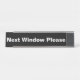The Next Window Please Desk Sign is perfect for any business or professional setting. With a simple message, this sign ensures customers and visitors know that a particular counter or desk is closed. This sign is perfect for banks, stores, counter services, and more!