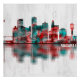 Red and Blue Skyline of Niagara Falls, Ontario, a Canadian city at the famous waterfalls of the same name, linked with the U.S. by the Rainbow Bridge