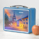 This is a standard metal lunchbox that appears to work just fine. We designed this box ourselves with an uploaded photo and custom text on the front and back. It looks absolutely beautiful except the front of the lunchbox is not centered like it shows in the photo. The print borders don't align with the inset flat part of the box where the preview photo online showed it perfectly centered in there. The back looks nice and centered though.