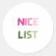 Nice List Pink & Green Christmas Fun Round Sticker