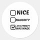 NICE NAUGHTY AN ATTEMPT WAS MADE CLASSIC ROUND STICKER