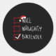 Nice Naughty Bartender Christmas List Santa Claus Classic Round Sticker