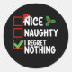 Nice Naughty I Regret Nothing Christmas List Holid Classic Round Sticker