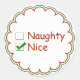 These funny Christmas stickers feature a l red and green text design: Naughty or Nice. The "Naughty" version is available in the shop.