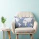 A nice and stylish pattern design of names (your own name) on a light blue background, with a graphic white map of world, and your initial letter at the back of the pillow