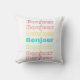 A nice throw pad with Bonjour written on it in distinct patterns of coloured lines ،Simple and modern design ،Cute colours with transparent subtleties.