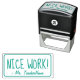 This inspiring rubber stamp design features the inspiring message "NICE WORK!" and a custom teacher's or educator's name. It could be used by a teacher, educator, or tutor when grading student work, to acknowledge that a student has done an exceptional job.