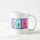 Nickolas spelled out as Ni C K O La S (Nickel Carbon Potassium Oxygen Lanthanum Sulfur) on a mug for the scientist in you.