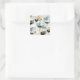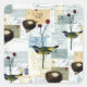 Autocollant carré avec mosaïque nids, petits oiseaux, fleurs et vieilles lettres.