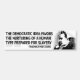 A bumper sticker featuring this quote from Friedrich Nietzsche: "The democratic idea favours the nurturing of a human type prepared for slavery."
