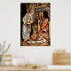 The Night Before Christmas Children in Bed Poster by Arthur Rackham is a whimsical and detailed 1915 illustration, portraying a magical Christmas Eve moment. In this captivating scene, a man dressed in pyjamas holds a candlestick as he catches a glimpse of Santa Claus, just as he ascends back up the chimney after delivering gifts. Rackham’s masterful use of fine lines and muted, earthy tones brings the room to life, with children peacefully sleeping in their beds, unaware of the enchanting event unfolding nearby. The cozy atmosphere is enhanced by subtle holiday decorations, while the glowing candlelight and the man’s astonished expression add to the magic and mystery of Christmas night. This vintage poster perfectly captures the charm and wonder of the holiday season, making it a treasured piece of art for any festive setting.