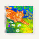Notebook featuring Louis Wain’s animal painting Cat Stalking (1860-1939). An orange striped cat walks a green field at night. White, purple, and red flowers are in the foreground. A wonderful gift for cat lovers and English art.