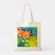Tote Bag featuring Louis Wain’s animal painting Cat Stalking (1860-1939). An orange striped cat walks a green field at night. White, purple, and red flowers are in the foreground. A wonderful gift for cat lovers and English art.