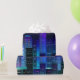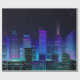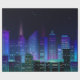 Night city panorama with neon glow on dark background. Futuristic cityscape with glowing neon purple and blue lights. City skyline. illustration with megapolis,skyscrapers,buildings.