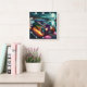Night cruising in a classic hot rod square wall clock