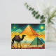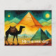 Desert camel with Egyptian pyramids postcard. Easily customize the message for your needs.