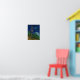 Poster featuring small landscape in impressionist style, night view of Haifa, bare tree, green grass, remote houses and dark blue sky. Pastel painting, soft pastels on paper, 2021