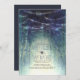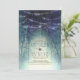 Rustic wedding invitation with enchanted nature design: old trees forest and hanging string lights. Vintage invite for your outdoor wedding in the woods.