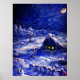A winter night in Russia. Lots of snow, traditional village house, moon light. A print from my painting, inspired by the "You Are My Only One" song by Yu. Vizbor